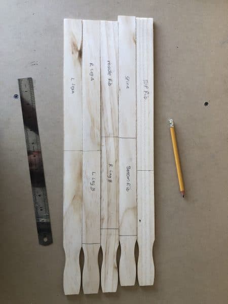 1. Cut the large paint stir sticks into the following lengths: